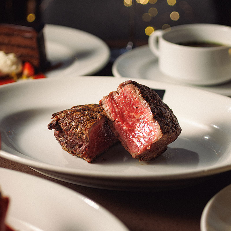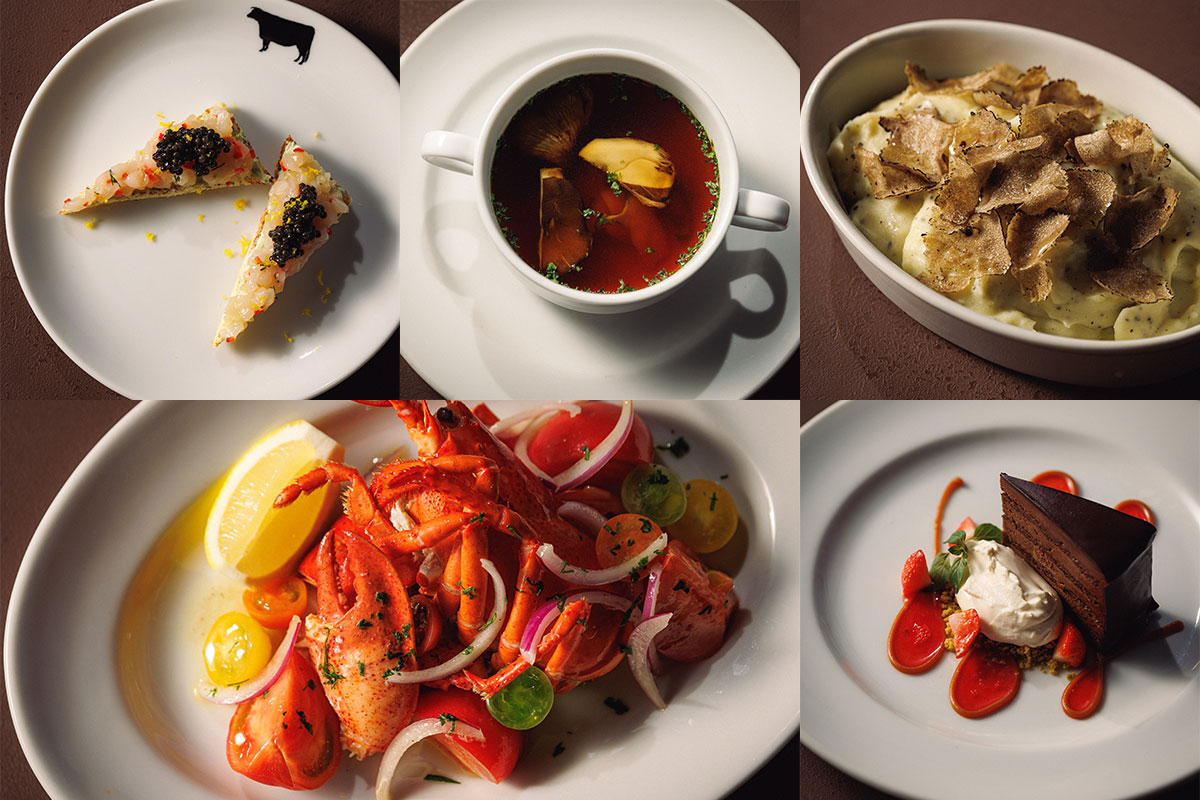 メインディッシュのステーキは群馬県産赤城牛の21日熟成ポーターハウスステーキ、USプライムビーフのテンダーロインステーキ、USブラックアンガスビーフのリブステーキの3種からお選びいただけます。(メインディッシュは同一グループで同じものをご注文いただきます。)